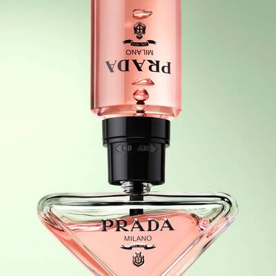 Discover Prada Paradoxe refill bottle that fits with any of the formats, allowing to save 40% materials and enjoy endlessly the iconic triangle bottle.